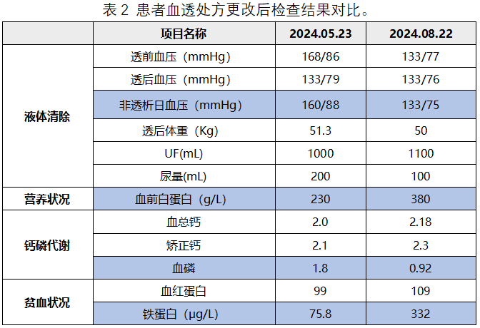 根據2024年西班牙專家共識[1]對血液透析患者慢性腎病相關瘙癢癥的診斷和管理建議,以及根據血液灌流在維持性血液透析患者中的臨床應用上海專家共識[2]中提到的血液灌流的適應癥,患者血液透析時增加血液灌流治療。治療之后患者皮膚瘙癢程度得到緩解,降低了血液中大分子毒素(甲狀旁腺激素、β2-微球蛋白)含量,提高血液凈化的治療效果。