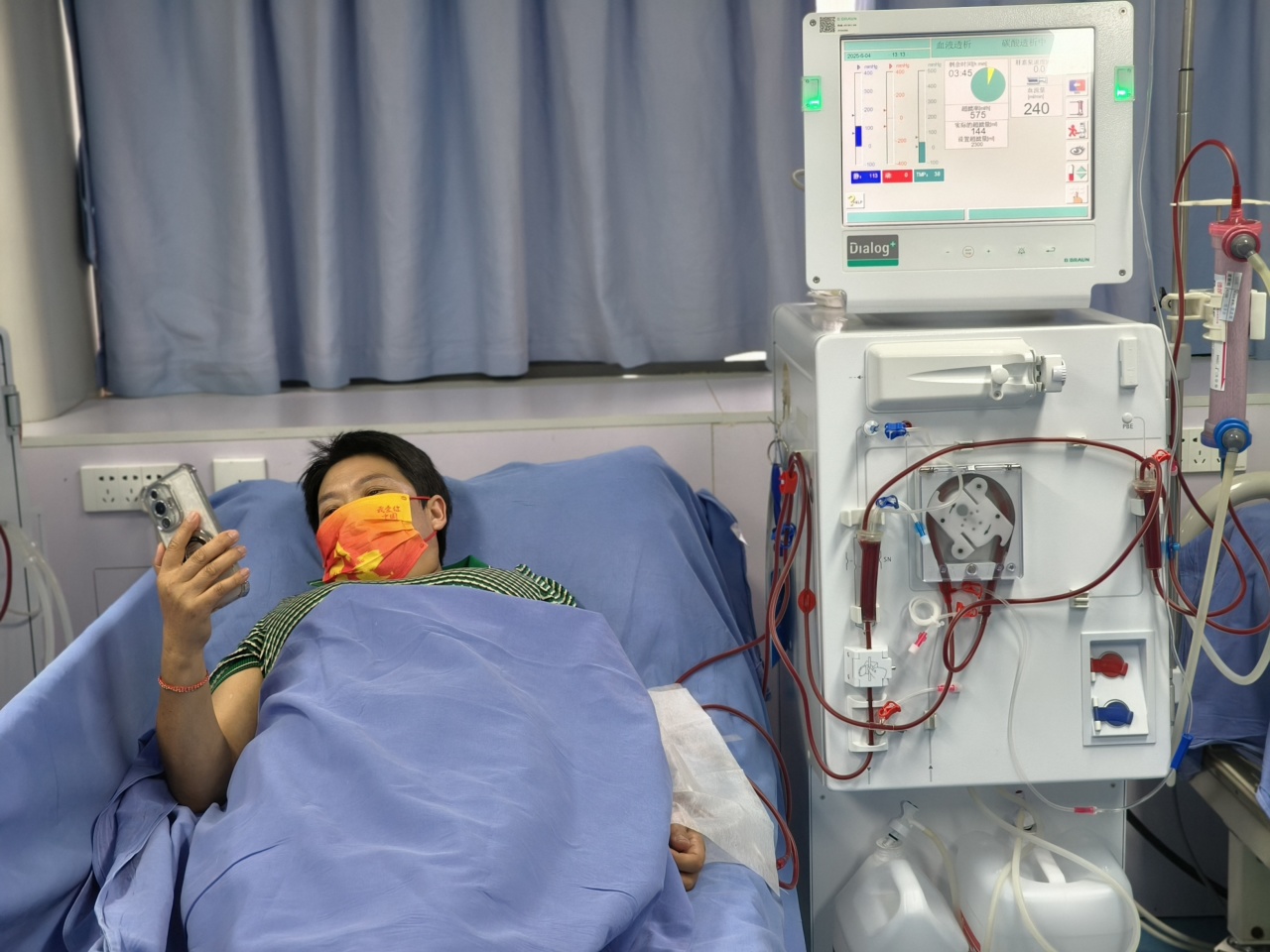 如今我稱透析為“身體的長跑訓練”。與病友們比較控鉀食譜時,我們像交換戰術的馬拉松選手;護士每日叮嚀“水要控制好”的絮語,是補給站最清冽的甘泉。當清晨第一縷光掠過透析器時,我凝視醫護人員浸透汗水的脊背——那些精準調校參數的手指,那些輕撫針眼的手掌,正在蒼白的床單上播種春天的河床。